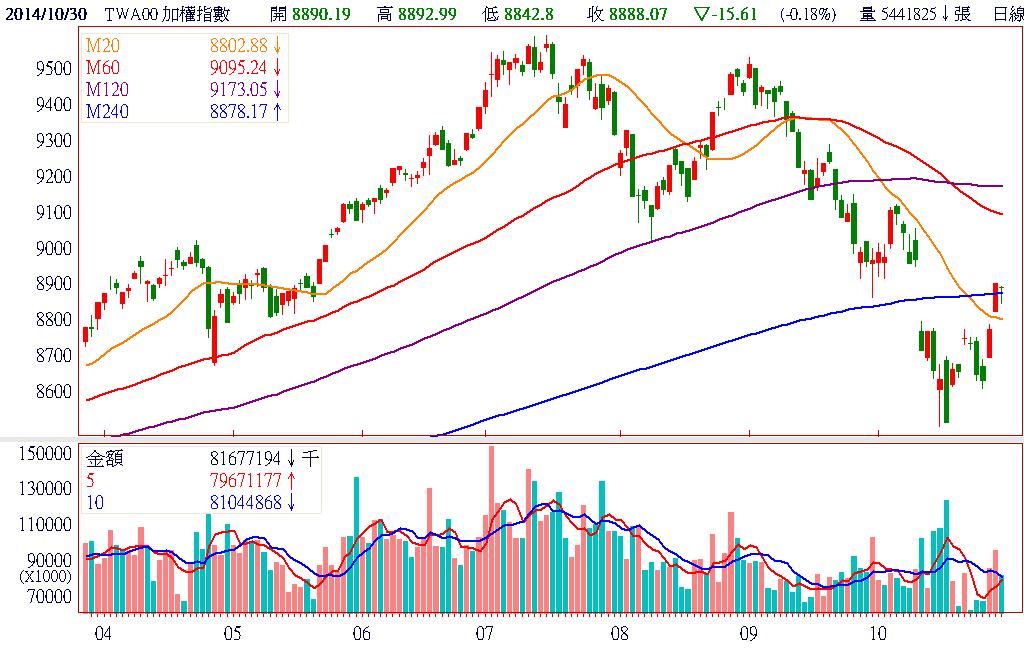 今日盤面強勢股可分為題材股及跌深反彈股,中國11月1日光棍節即將開跑,電子商務概念股提早上演慶祝行情,像是富邦媒(8454)、商店街(4965)、東森(2614)等,漲幅均逾6%。另像是跌深股仍是資金搶進的主要族群,伍豐(8076)、大魯閣(1432)已連續拉出三根漲停,連拉兩根漲停的則有陽程(3498)、單井(3490),預期在資金回籠帶動下,跌深股短線應仍有不錯的表現空間。