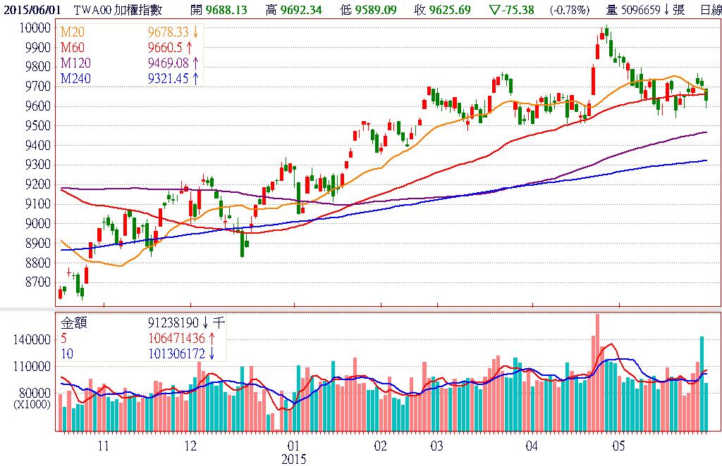 今日台股開放漲跌幅放寬至10%首日,因開盤後電子股未如預期走強,漲停家數僅兩家,引發失望性賣壓出籠,造成早盤指數出現跳水式下殺,但在10點見底後買盤信心似乎又開始回升,漲停家數也逐步增加。由於股價彈升力道以中小型股最為強勁,故可見到櫃買指數領先加權指數由黑翻紅。終場加權指數以9701.07點作收,下跌11.77點,跌幅0.12%,市場成交總金額為1408.51億元。