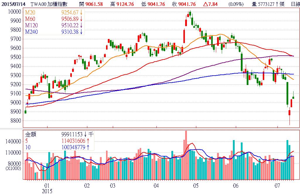 希臘債務問題可望有解,將續留歐元區,激勵昨日歐美股大漲,同時帶動今日亞股開高,挑戰連四漲,可惜陸股盤中出現漲多回檔走勢,對亞股形成不小壓力,台股的漲幅也跟著一路收斂。觀察外資的籌碼變化,現貨賣超縮小、期貨空單續減,增添台股向上反彈的機會。終場加權指數以9041.76點作收,上漲7.84點,漲幅0.09%,市場成交總金額為1002.02億元。