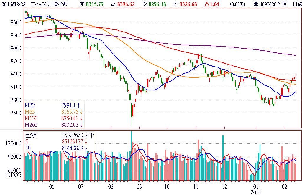 今日台股早盤電金雙主流上攻帶動下,加權指數開平走高,盤中一度逼近8400點的波段新高,可惜10點過後遭遇獲利回吐賣壓,指數漲幅快速收斂,甚至由紅翻黑,連帶個股的波動也跟著加劇。除了上市股虎頭蛇尾外,上櫃股更因新藥指標股浩鼎(4174)解盲失敗,拖累生技股同步面臨修正命運,浩鼎、中裕(4147)的流動性問題是否會擴散到其他中小型股,將是接下來重要的觀察指標。終場加權指數收在8326.68點,上漲1.64點,漲幅0.02%,市場成交總金額為752.58億元。