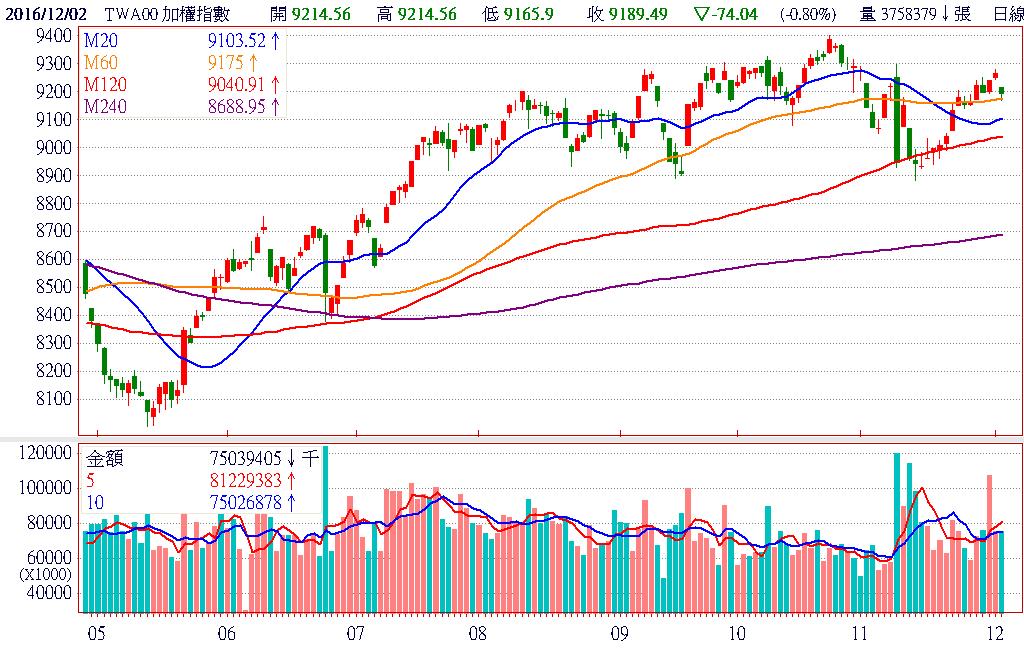 由於市場傳出蘋果對iPhone 7零組件砍單的利空,衝擊美股費城半導體及那斯達克指數分別重挫4.9%及1.4%,連帶台股半導體類股及蘋概股跟著中箭倒地,拖累大盤開盤就跳空跌破9200點,外資期現貨也出現大賣超。由於台股與費半指數連動性高,以今日跌幅不大來看,短線恐仍存有修正風險。終場加權指數以9189.49收,下跌74.04點 ,跌幅0.80%,市場成交總金額749.39億元。