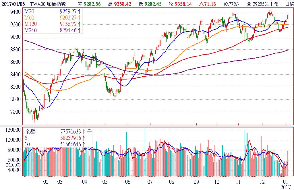美股重新轉強,道瓊朝20000點邁進,激勵台股同步走高,加上DRAM、造紙、LED等類股均傳出報價調漲聲音,帶動族群大漲慶賀行情,造就今日加權指數放量上漲的行情。但外資現貨僅買超28億元,相較成交量放大近200億元,存有不小的落差,不排除是有本土資金進場的跡象。若是如此,本波小鬼當道的漲升行情就可以更加期待了!終場加權指數以9358.14作收,上漲71.18點 ,漲幅0.77%,市場成交總金額761.69億元。