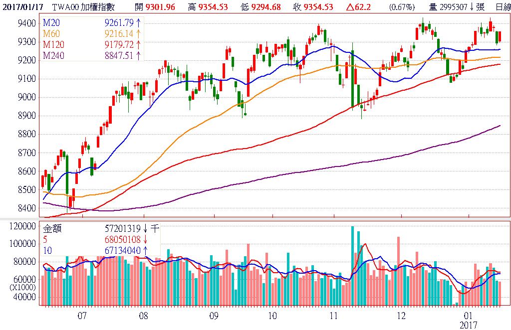 在昨日反應英國硬脫歐的利空衝擊後,今日亞股普遍有止跌反漲的情況,唯在不確定風險仍未消失的影響下,台股成交量能並未能突破六百億元。反倒是內資股在股王大立光(3008)再度改寫新高帶動,又開始活蹦亂跳,投機性濃厚的玉晶光(3406)、淳安(6283)等均攻上亮燈漲停。終場加權指數以9354.53作收,上漲62.20點 ,漲幅0.67%,市場成交總金額571.16億元。