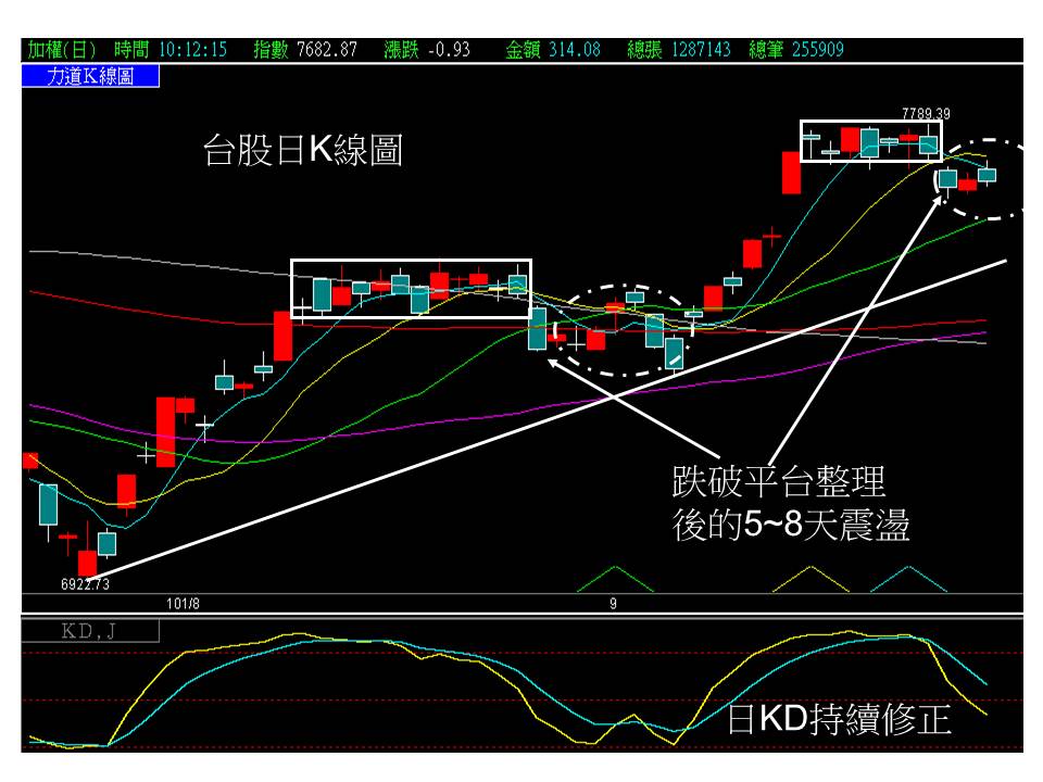 0928(盤中)依舊是跌破7700點之後的拉回整理格局