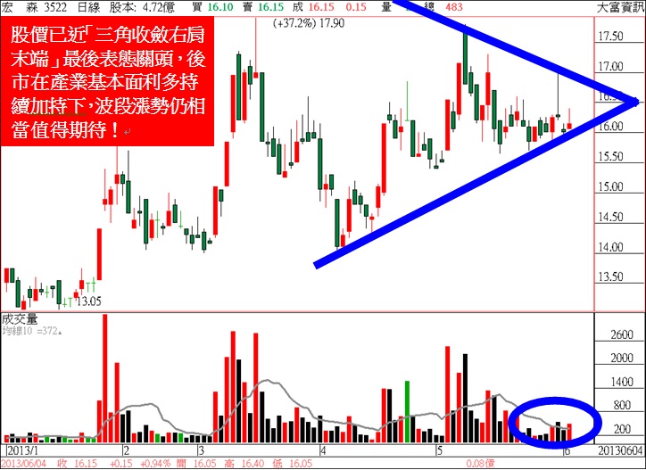 宏森光電(3522)主要營業項目為「TFT-LCD『背光模組』重要零組件-『擴散片、反射片、增亮膜、Mirco Lens Film二合一光學膜』等產品之研發、製造、印刷、裁切暨加工與銷售」。現有總產能已大幅增加達到單月一千六百萬片。如果以2012年年度出貨總量而言,宏森光電已經拿下國內整體多達25﹪市佔率,台灣幾家主要背光板大廠如:中光電、瑞儀、輔祥、科橋、大億科等,都是宏森公司客戶。不論是產品多樣性或是客戶分佈廣度而言,宏森的競爭實力都相當強勁,由於目前接單狀況佳,更持續獲得新增產能挹注,預料其後市在台灣光學膜市場整體市佔率,仍有繼續攀高機會。