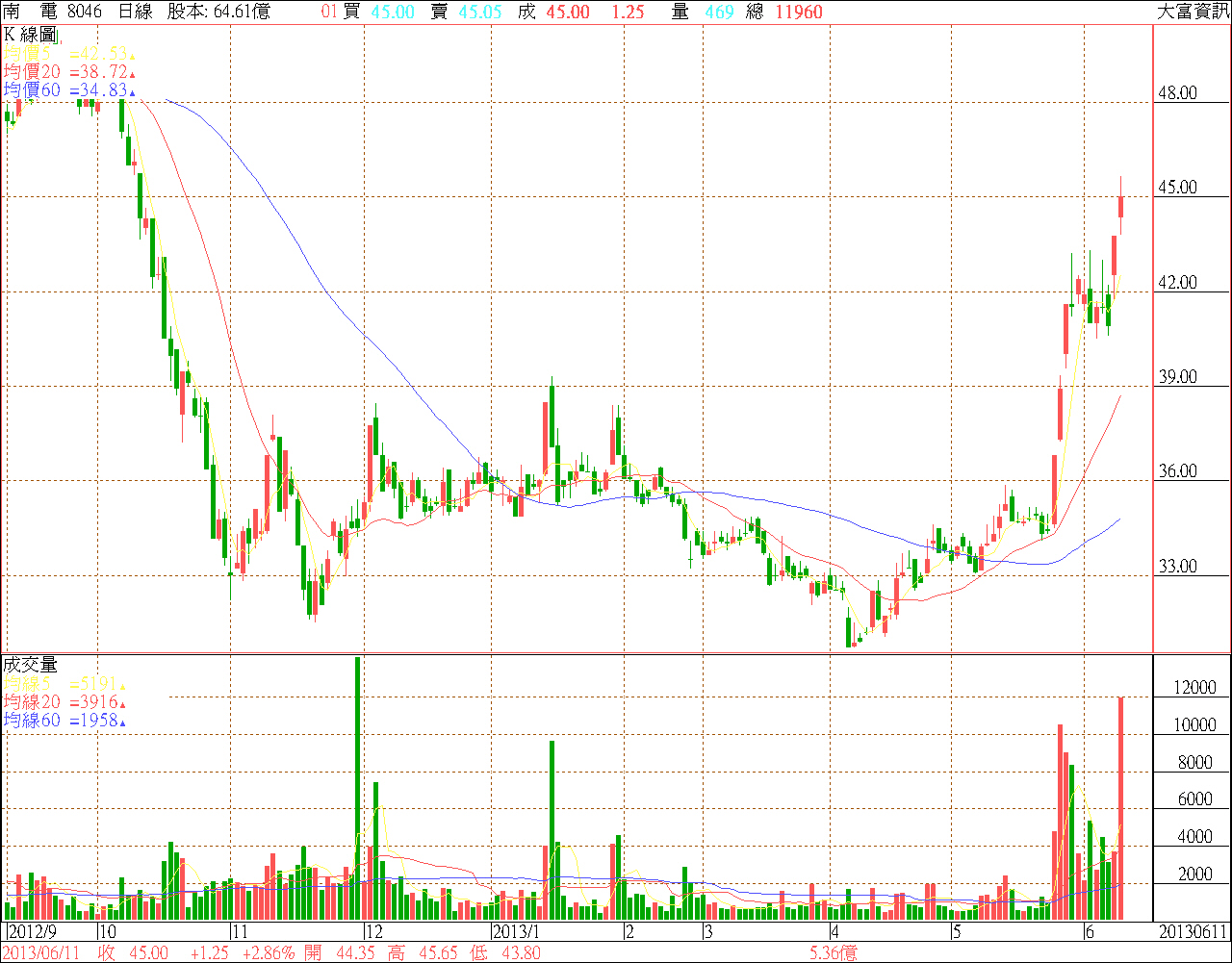 南電2013年Q1營收比重:印刷電路板約佔32%,覆晶載板約佔41%,打線載板約佔27%。PCB以PC相關產品為主,WB約有50%以上為手機應用。毛利率依序為FC(20%)、PCB(13~18%)及WB(約3~4%)。南電目前的生產基地分別位於台灣桃園以及中國崑山,台灣廠將以生產載板產品為主,中國基地則將主要生產PCB板與傳統打線載板載板。