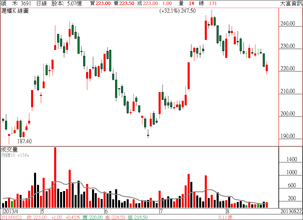 台灣太陽能導電漿專業廠-碩禾(3691)上半年稅後淨利新台幣3.15億元,每股盈餘6.35元。碩禾指出,下半年營收獲利可望比上半年更具成長空間。碩禾上半年合併營收21.71億元,較去年同期增加1.43億元,成長7.05%;第2季營收11.2億元,也較第1季成長6.57%。