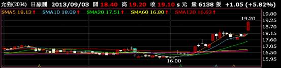 受惠於國際鋼廠陸續大幅調升報價,以及鎳價回升,燁聯昨日報價大漲4500元/公噸,下游不鏽鋼業也將於近日陸續向客戶調漲價格,業者表示,目前還在觀察客戶反應,不過業界對於漲價都已經有共識了,初步看來應該是能夠成功漲價,只是漲價的幅度則還要視情況而定。預計下游不鏽鋼廠都可望跟漲。允強今日股價站上1年半新高,底部型態完整,突破新高後,配合量能出來,股價將朝21.5~22元挺進。