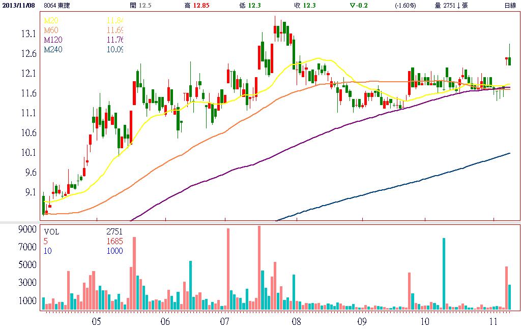 東捷(8064)為TFT-LCD面板廠使用製程設備、檢測整修設備、自動化設備等供應廠商,大股東為群創(3481),持股達12.87%。由於面板設備大型化,在地化組裝是未來趨勢,加上屬於群創團成員,擁有集團資源支持之優勢。