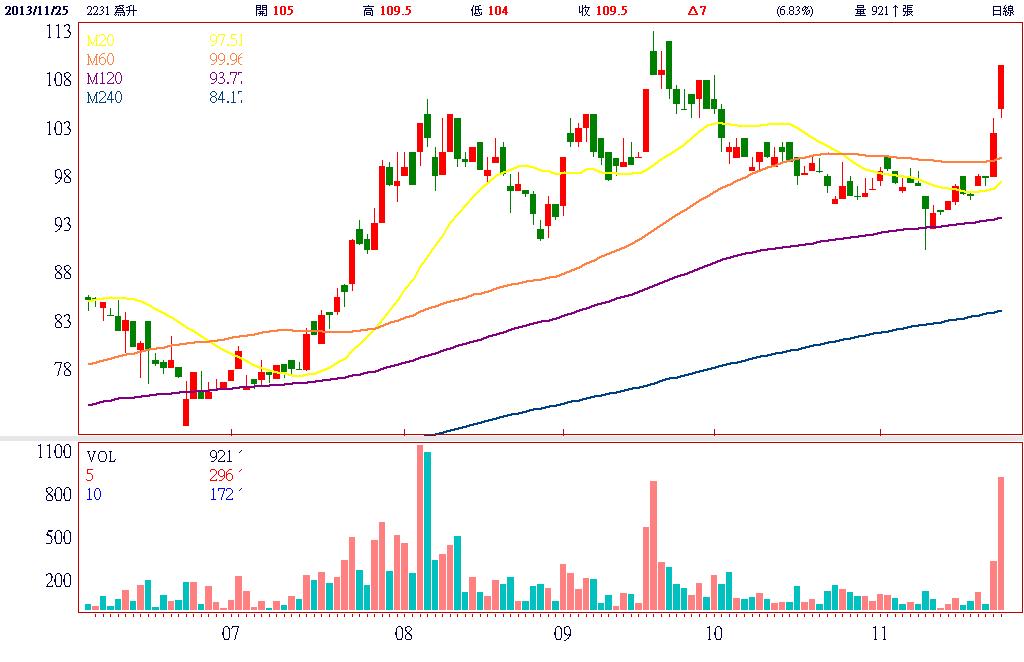 胎壓感測器(TPMS)廠為升(2231),受惠美國汽車汰換潮剛開始啟動、胎壓感測器售後市場更換期(美國國家公路交通安全管理局要求輪胎廠對舊車客戶安裝胎壓感測器,對主攻售後市場的為升相當有利)及歐洲法規上路,帶動今年產品出貨攀升,光上半年出貨量就已達去年全年水準,預估今年出貨可達45~50萬顆,在北美零售客戶陸續採用下,明年出貨將倍增至80~100萬顆。10月營收則在傳統旺季挹住下,交出1.34億元的成績,改寫今年新高,預期單季營收更將挑戰4億元的歷史新高。考量近三個月投信及外資積極佈局,且股價剛脫離成本區,後市仍有高點可期!