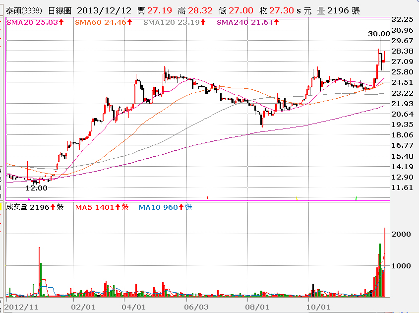 營運轉型有成的泰碩(3338),明日將以20元掛牌,因其雲端伺服器熱管已出貨給國內伺服器代工大廠,將順勢搭上本波題材熱潮,加上熱導管及散熱模組也取得中國兩大電信設備廠的認證,還可搶食中國4G建置商機大餅,話題性十足。再由營運基本面觀察,自產品線從連接線擴大到散熱模組後,毛利率就一路走升至今年前三季的18.99%,雖然今年EPS無法超越去年的2.21元,但預期在明年營收成長2成及毛利率持續走高帶動下,獲利將有機會挑戰歷史新高。