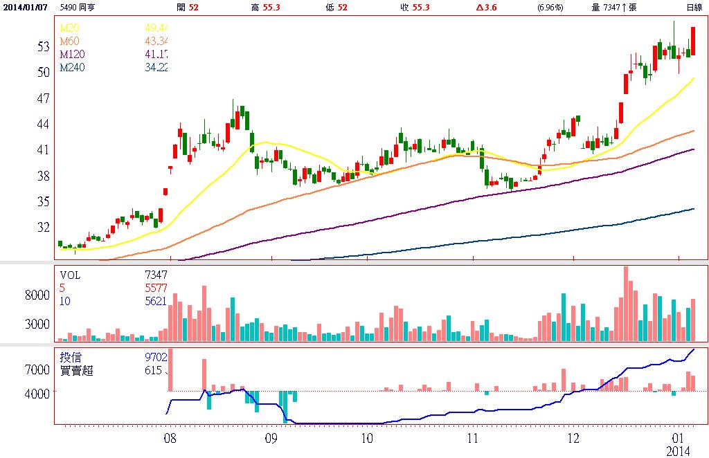 具有物聯網概念的同亨(5490),受惠CES展題材熱度持續升溫,加上投信買超擴大,激勵今日衝上亮燈漲停。同亨主要生產金流管理終端產品、物流管理終端產品等,主要客戶為美國最大聯合信用卡清算公司FDC,約佔營收比重達70~80%。由於美國VISA及MasterCard組織聲明於2015年後,非晶片信用卡產生之交易問題將由銀行端自行負責下,預計將掀起一波晶片卡換機潮,成為推升同亨今年營收及獲利雙雙成長的重要動能。