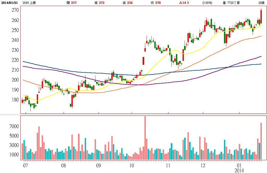 隨著歐洲經濟表現明顯回溫,美國、中國也將持續擴張,將有助上銀(2049)取得更多訂單,加上部分工具機業者也預估2月訂單將持續優於元月,頗有營運谷底回升的意味。另在智慧自動化方面,因中國對環保的重視與薪資的快速升高,未來智慧自動化已是無可避免,也讓上銀目前智慧機器人供應處於供不應求的盛況,這個月機器人已出口5台包含軸(關)節式、SCARA(水平軸),未來7月目標出貨達到一個100台,全年出貨目標將成長一倍。
