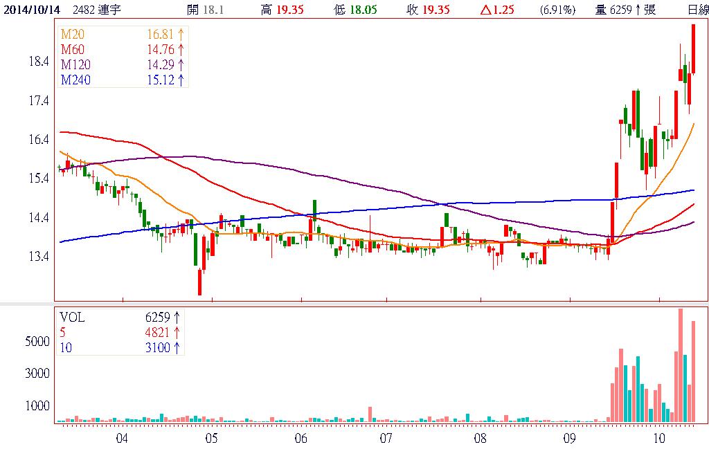 5943 萬,月增率為17.2%,較去年同期微幅增加,第三季財報有機會第二季,再加上本波搭上蘋果推動Apple Pay的商機,以其終端讀卡機為主的業務將可能在未來Apple Pay被廣泛應用之後受惠,雖然上半年仍然呈現虧損狀況,但在第三季表現優於第二季的情況下,將有轉虧為盈的機會,因此近期表現較大盤強勢,可以看出約略沿著月線向上的軌跡,因此不妨在量縮時可以多加留意。