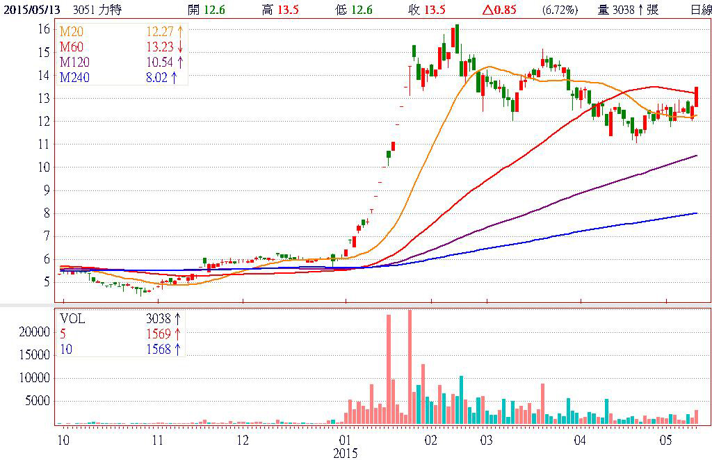 力特(3051)今日股價正式突破整理區間並站回季線,技術面出現轉強訊號。由於第一季財報將於周五盤後公佈,若淨值確定連續兩季達5元之上,預計最快下周二就可恢復正常交易,增加股票流通性,有望順勢上演慶祝行情。另外,深紡織A近期股價維持高檔震盪走勢,若持續向上攻高,將有利與力特出現比價效應。 (我們僅係提供證券投資之研究分析意見或建議,會員係基於獨立之判斷,自行決定所投資之有價證券,並自負投資風險。)