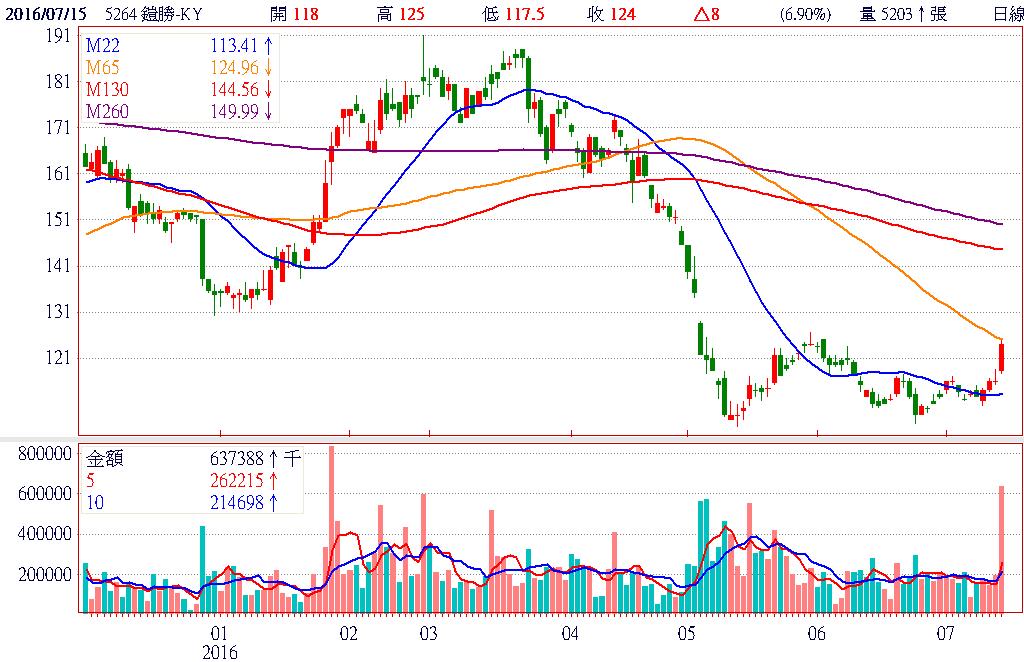 鎧勝-KY表示已於7月開始生產一款新的MacBook,且2016下半年將逐步為其他機款安裝1000台CNC機台,營運動能有望逐步轉強,預估第三季營收將有30%的季增幅度。另因明年iPhone 8將改採金屬外框,降低製造複雜度,有利蘋果增加第三家供應商,以拉高訂單議價權,鎧勝-KY藉由和碩(4938),將有望取得iPhone訂單,成為營運成長新動能。