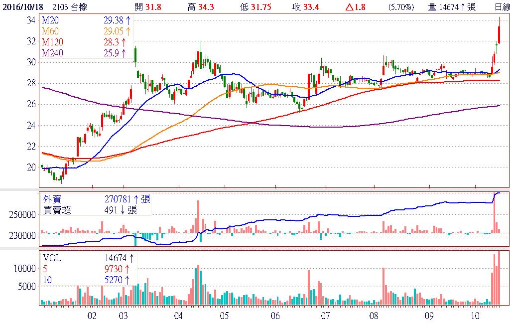 橡膠廠台橡(2103),合成橡膠產品營收比重超過五成,上半年因持有較低成本的原料庫存,稅後淨利已是去年全年的125.2%。下半年則藉由產品組合優化、毛利較高的熱可塑性橡膠TPE等高值化產品比例提升,加上中國車市銷售狀況優於市場預期,第四季營運可望更上層樓,預估全年的整體獲利有機會達近三年高點。