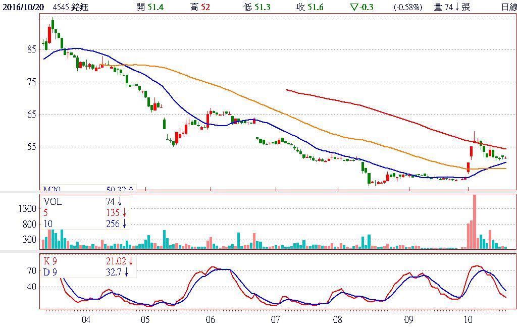 公司表示,在足夠訂單能見度帶動下,第四季營運將優於第三季,下半年表現可望明顯優於上半年。另將持續調整產品組合並致力於成本控管,積極強化本身生產線的自動化程度,以推升毛利率。在10月3日開放信用交易後,股價就出現底部放量起漲的攻擊訊號,隨著均線開始向上翻揚、持續價跌量縮近尾聲及日KD來到低檔區,預期股價將有出現第二波攻擊的機會。