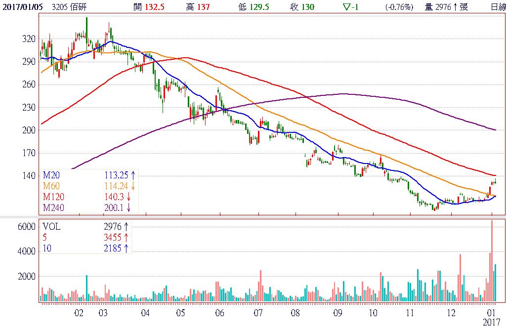 由於生技股始終是台股內資主力偏好的族群,又適逢權值股休養生息、小鬼股當道的時刻,一旦美國生技股真的開始觸底反彈,漲幅同樣大幅落後的國內生技股,有望順勢上演大反攻行情。在今年首個交易日就出現底部爆大量攻擊訊號的佰研(3205),應可視為行情熱度的觀察指標之一。目前主要客戶克緹在中國有160項產品,公司將會持續開發更多產品,以發揮通路效益,規劃每季推3~5項新產品。有機通路「無毒的家」,也會持續展店,預計新增6~7家達30家,有望帶動公司營運脫離谷底。