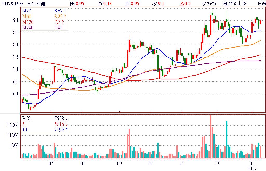 和鑫(3049)原為彩色濾光片廠商,後期轉型為觸控感應器製造廠,並以投射式電容技術為主,目前最大客戶為三星,營收占比達90%以上,主要替三星進行on-cell AMOLED前段觸控感應器代工。公司表示目前大客戶訂單仍然熱絡,目前稼動都處於滿載狀態,農曆年加班趕工機會相當高。公司已通過18億元資本支出案,預計將現有月投片量3.6萬片的產能提升至4.8萬片,規劃設備於第三季設置完畢,第四季開始小量試產,除了供應三星外,也將拉高出貨中國AMOLED客戶的比重,明年營運仍具有不小的成長空間。