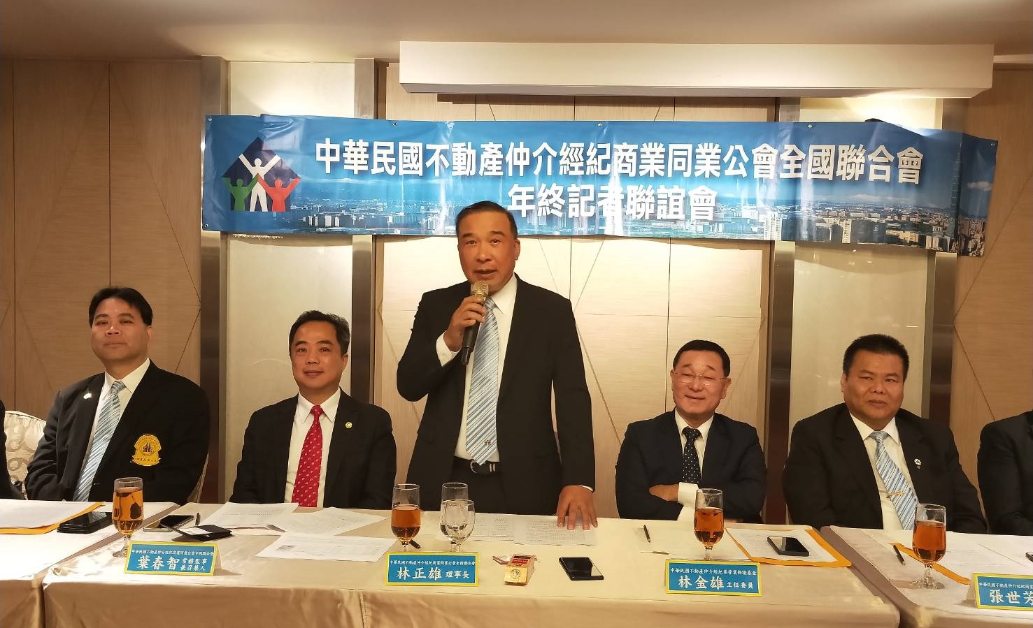 中華民國不動產仲介經紀商業公會全國聯合會於24日舉行年終記者會,全聯會理事長林正雄與各縣市公會代表共同對2020年房市發展,給出代表字「湧」。