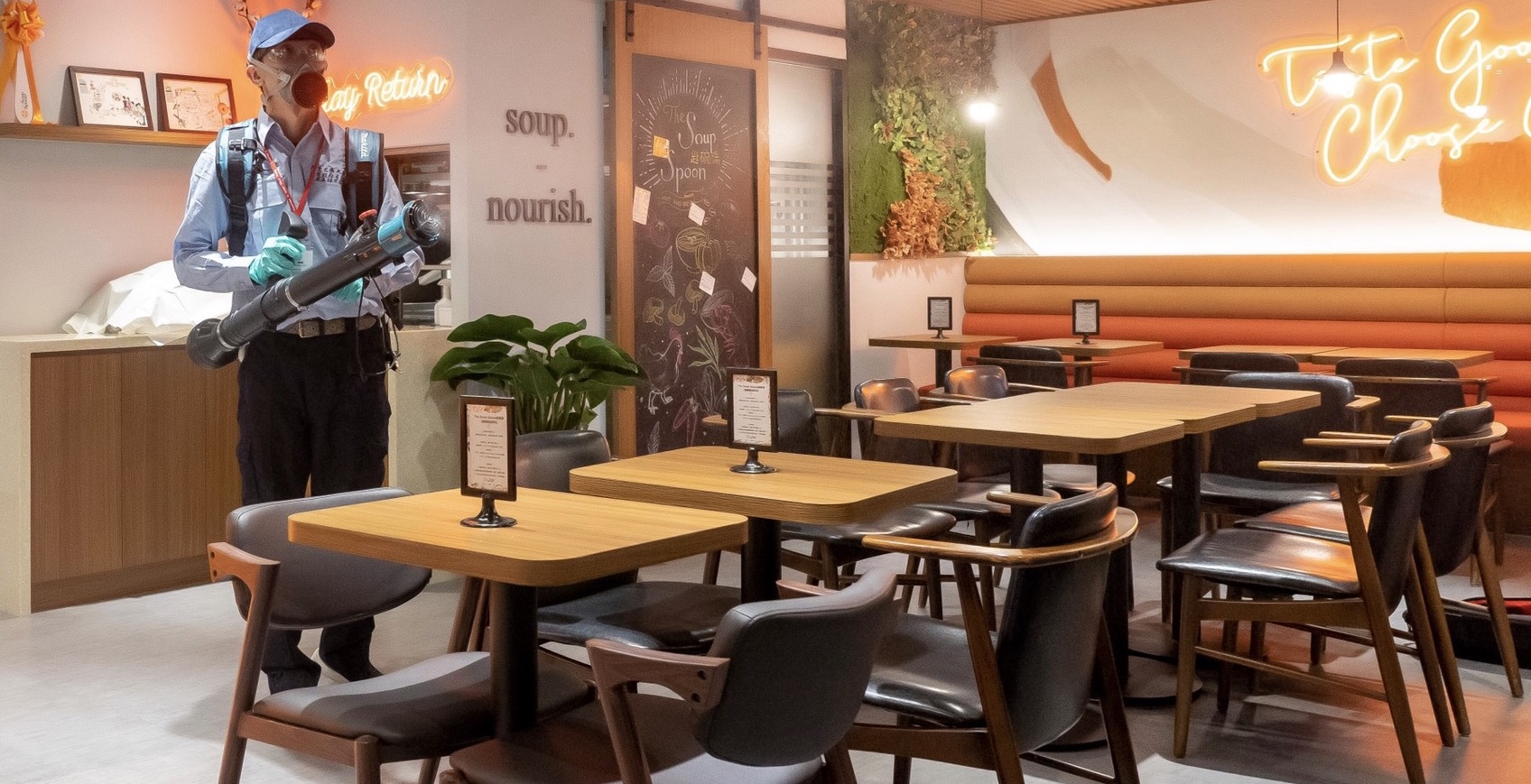 中保科技集團就這波疫情開始,從各關係企業大樓、「THE SOUP SPOON匙碗湯」餐飲門市等場域進行消毒防疫,保護員工,也為民眾打造安心用餐的場所。