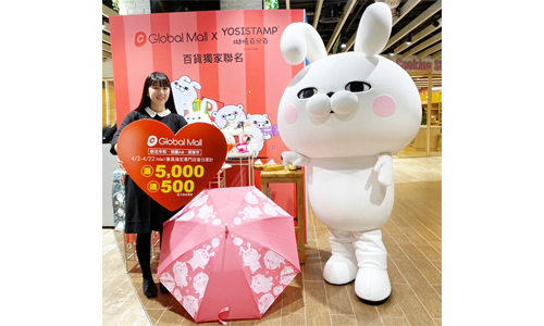 今年母親節檔期,Global Mall更為百貨獨家與日本知名LINE貼圖「YOSISTAMP呦嘻百分百」合作,設有全台首家快閃店、4米高大氣球、獨家會員禮、造型甜點,甚至還推出母親節蛋糕以及人偶見面會,共度療癒母親節。