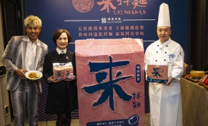 而這回「來」拌麵的「來」字,極具時尚設計感,公關副總吳若寧表示,是來自時尚設計大師,鑫囍國際總經理黃偉豪(Daniel)(左)的傑作。