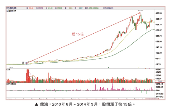 就這樣,他不想再看到這檔股票,這檔股票最後的高點是38.8元,2.5倍的獲利,22% vs. 2.5倍的獲利,這還不是最慘的!翻開他的筆記,早在2010年的時候就注意到儒鴻(1476)這檔股票,當時價格26 元,儒鴻在2012年~2014年啟動一波大多頭,最高價來到407元,和他當時的26元相比,翻了快15倍。和朋友討論這種擦身而過的財富時大家都很有共鳴,這檔我早就注意它了,只是我現在半張都沒有,如果當時買進持有到現在就發了。幸運女神為何不眷顧我,手上的股票都不太會漲?因為漲不停的股票我早賣掉了。