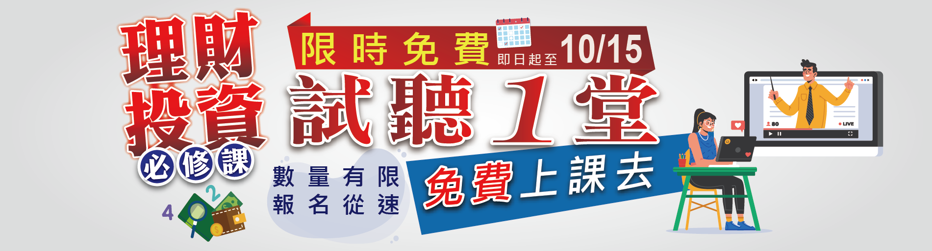 理財學習網即日起至10/15,與大家歡慶雙十節,推出"免費上課"的活動,只要在官網註冊會員即獲得資格,席位有限,趕緊預約報名!