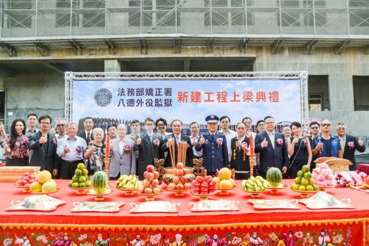 上樑典禮由矯正署署長黃俊棠擔任主典官,八德外役監獄典獄長葉俊宏、國防部最高軍事法院院長金甌、及同開公司等人,一同出席祭拜祈福。