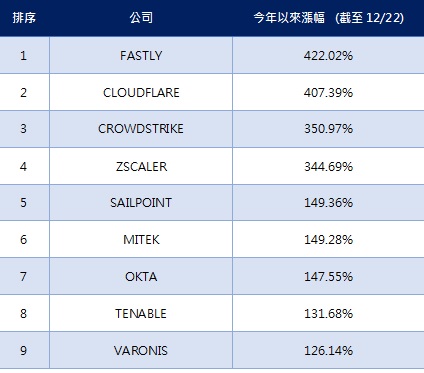 受英國變種新冠病毒訊息影響,本周以來國際股跌多漲少,22日美股在銀行、航空領跌下,道瓊指數終場下跌200點,約0.66%;無獨有偶,台股也受到本土病歷再現拖累,22日重挫207點。但就在全球股市開始出現震盪之際,卻有類股開始悄悄的勁揚,並再創下歷史新高,就是網路資安類股,其中有九檔相關類股從今年以來漲幅超過100%,間接帶動網路資安類股股價走勢創新高。