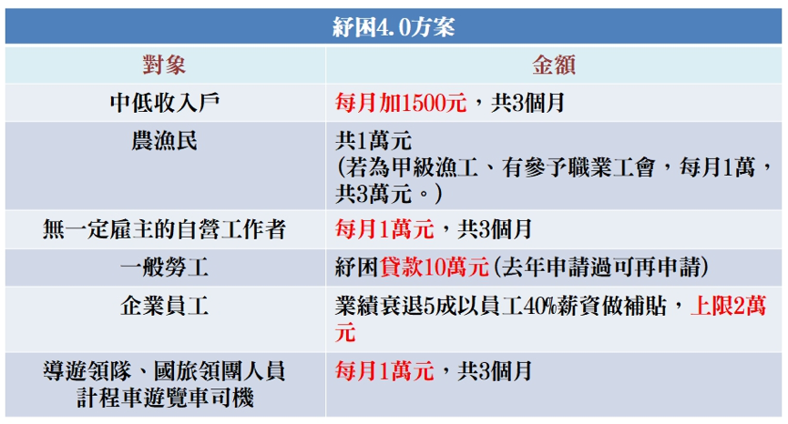 行政院於5月13日提出的修正案,原預算總額為6300億元,不過因國內疫情嚴峻,民進黨黨團於28日進行朝野黨團協商,提出第11條條文在修正動議,再增加2100億元,讓預算總額來到8400億元。立法院今天加開院會三讀通過「紓困4.0」。