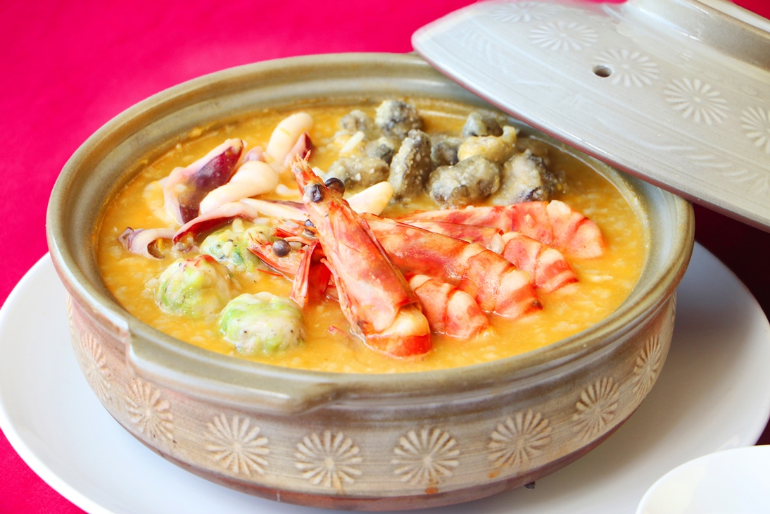 澎湖福朋喜來登酒店推出「澎湖南瓜大蝦海鮮粥」,以昆布海鮮高湯將澎湖南瓜及生米慢煮細燉,搭配上風味濃郁、口感鮮脆的澎湖海大蝦及新鮮澎湖小管、郭家牡蠣、主廚手工自製海菜鮮魚丸,匯集成豪華海鮮粥,每份足以4~6人享用。