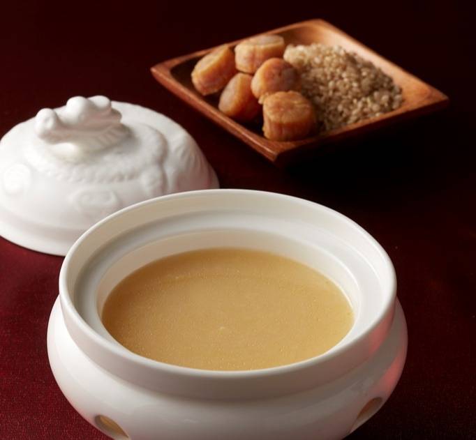 台北寒舍艾美酒店推「寒舍食譜雞粥」,黃皮雞加入糙米烹製4小時而成鮮醇甜美的上湯湯底,匯集食材菁華並過濾雜質,使糙米的膠性黏柔化作綿純細稠的湯粥,口感溫潤滑順。