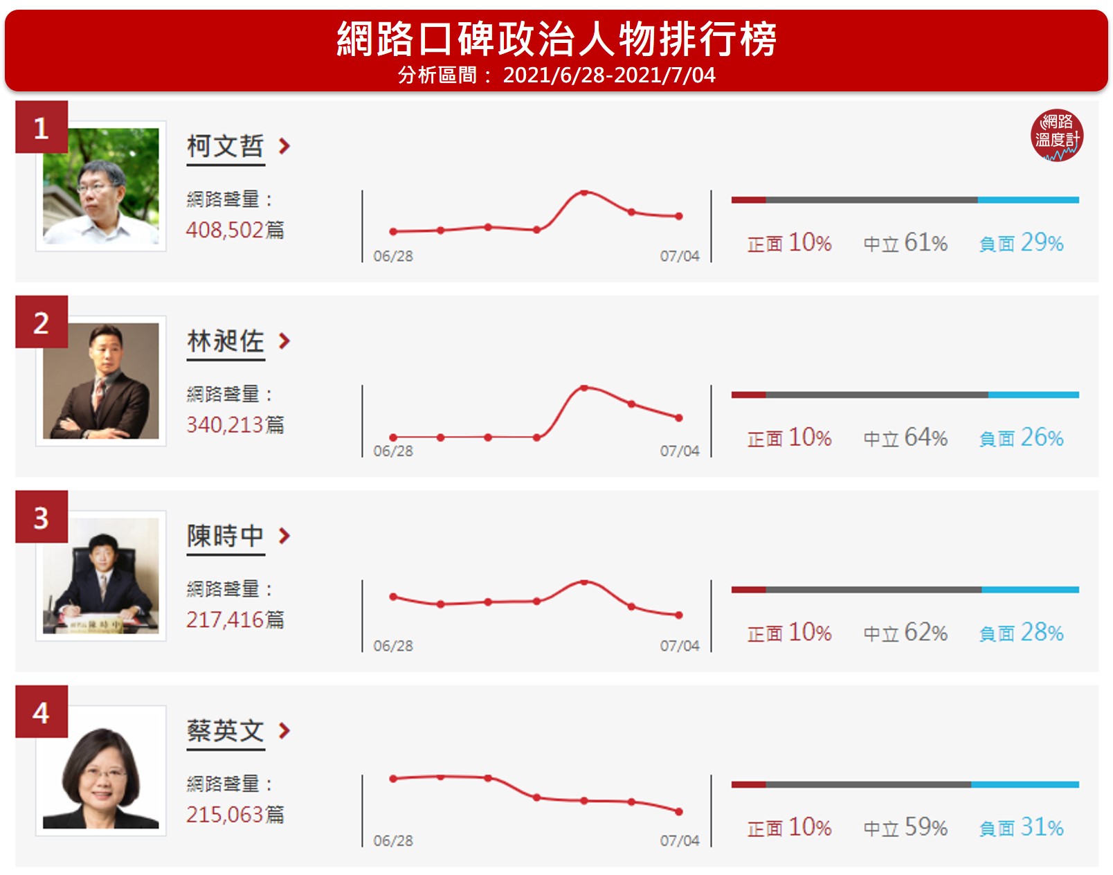 林昶佐的火紅程度讓他登上《Daily View網路溫度計》立法委員口碑排名的第一名,同時也是政治人物口碑排行的第二名,網路聲量擊敗陳時中與總統蔡英文。