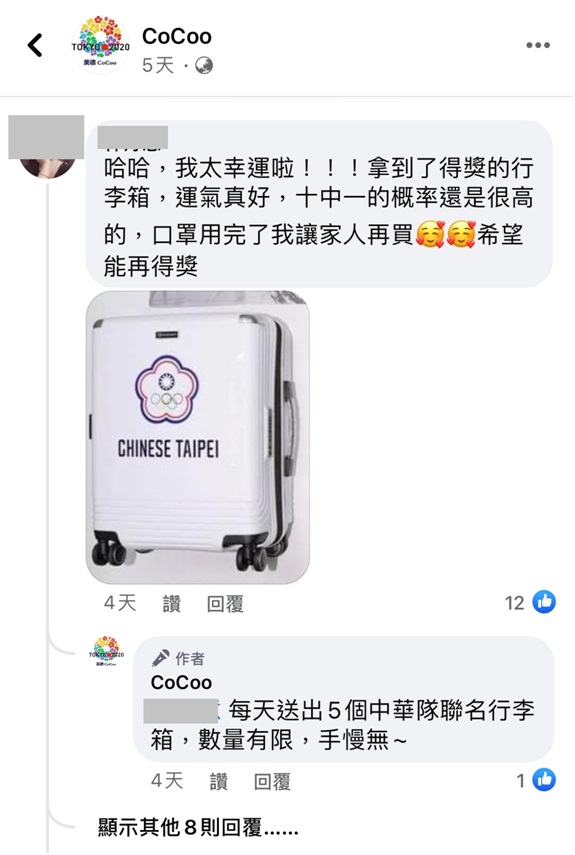 本案經美德公司查證,發現「中華奧會運動聯名款」醫用口罩上市後,陸續有假冒、詐騙網頁盜用官方臉書專頁圖文,並以粗糙方式製圖、贈送未經授權行李箱,該假冒粉絲頁IP位置來自深圳,消費者若透過境外網站進行交易,恐導致權益受損。