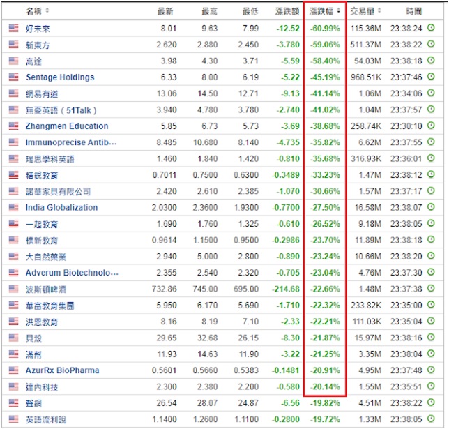 上圖為7/23(週五)午盤中概股慘況