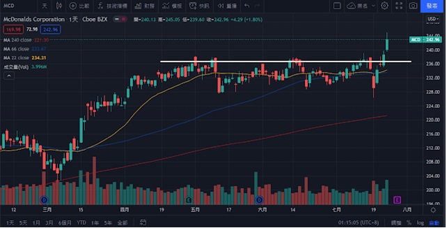 上圖為麥當勞(代號:MCD)日線圖