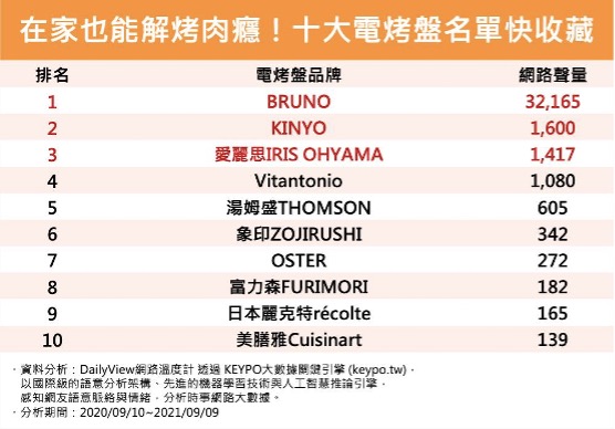 不不不~除了烤爐之外,你還有「電烤盤」這個選擇(哆拉A夢音效登場)!今天<Daily View網路溫度計>透過<KEYPO大數據關鍵引擎>來調查,受到網友熱烈討論的電烤盤品牌,想烤肉煎蝦通通沒問題,提供給還在觀望的你參考參考!