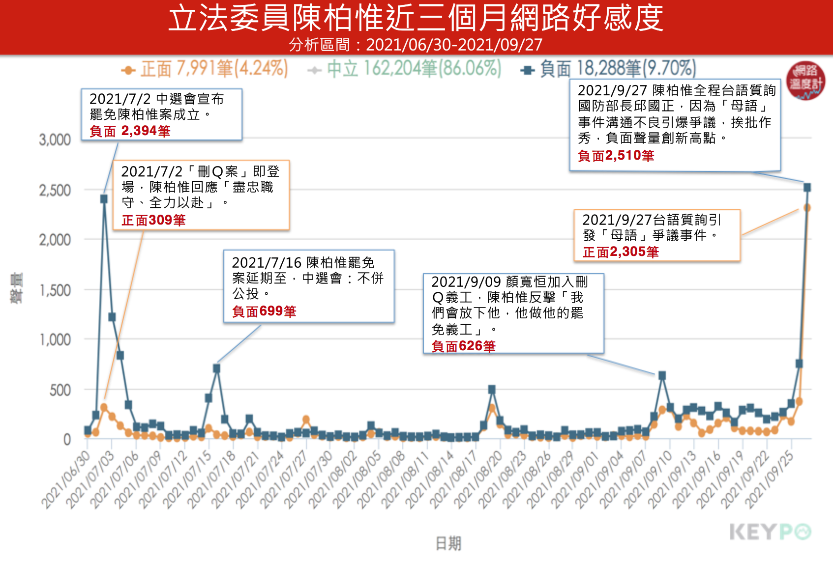 image source:KEYPO大數據關鍵引擎/網路正負聲量(分析時間:2021/06/30~2021/09/27)