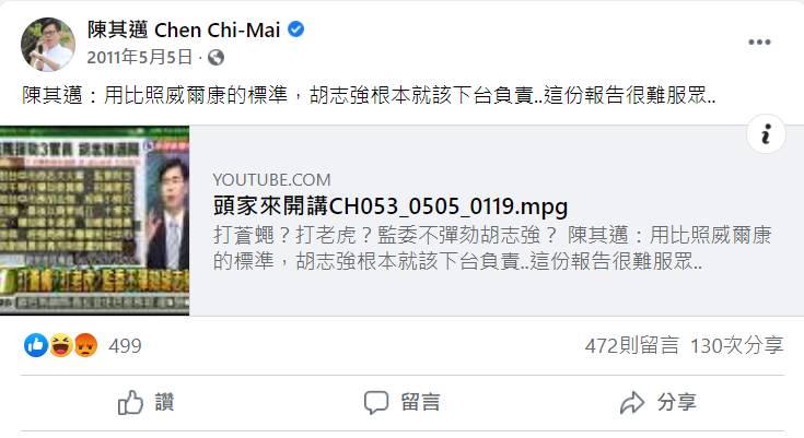 如今高雄46命惡火震驚全台,陳其邁過往言論重新被網友翻出討論,「若不比照下台,等同間接承認自己之前只是藉機政治操作」等等,還有不少網友留言「之前不是嗆胡志強下台」、「又雙標了嗎」。而陳其邁在今(15日)也被媒體問及此事,哽咽回應「會深切反省,我也不會迴避我的責任」。