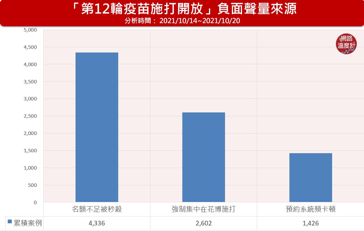 系統觀測上萬個網站頻道,包括各大新聞頻道、社群平台、討論區及部落格等,針對討論『第12輪疫苗開打施打狀況』相關文本進行分析,並根據網友就該議題之討論,作為本分析依據。