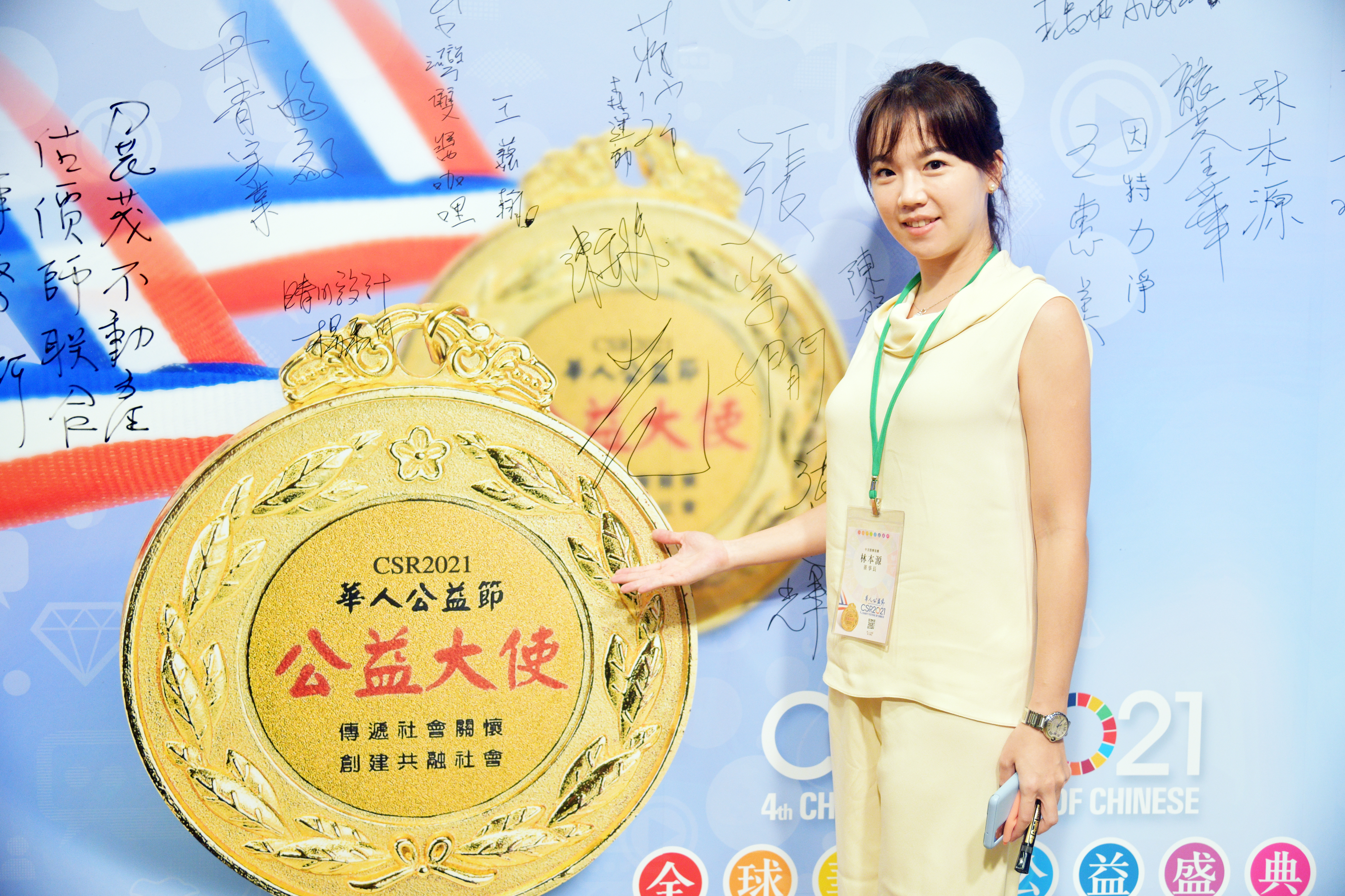 ▲中美醫藥集團品牌總監林宜琳代理父親林本源授勳華人公益大使