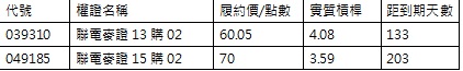看多聯電投資人可留意039310聯電麥證13購02,履約價60.05元;另可留意049185聯電麥證15購02,履約價70元,實質槓桿3.59倍。