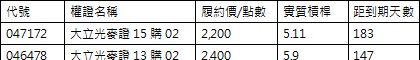 權證投資人可留意047172大立光麥證15購02,履約價2200元;另可留意046478大立光麥證13購02,履約價2400元。