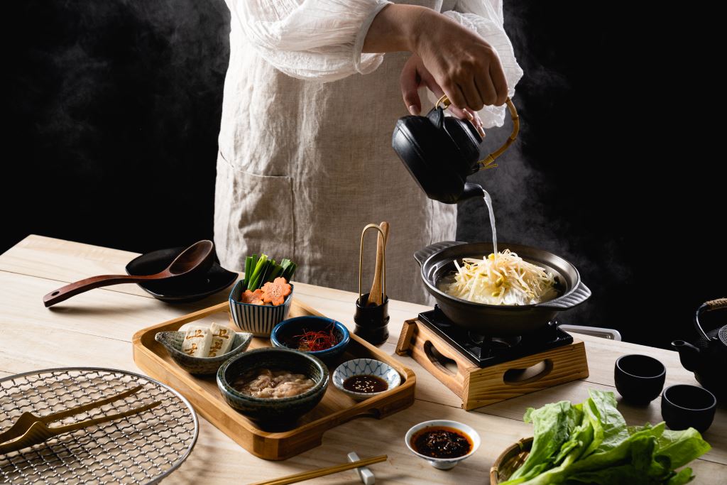 上吉燒肉將發源自日本九州福岡縣、成年男子愛吃的牛大腸鍋,作為感謝祭割烹主食,林佑勳表示,大腸鍋特選桂丁雞骨熬煮8小時香濃湯頭,加入嚼勁十足的澳洲和牛大腸、特製炭烤燒豆腐,搭配韭菜、蒜頭等禦寒佐料,一喝湯頭讓人領會日式禦寒鍋物的濃濃炭香風情,是九州下酒好菜;除了店內享用鍋物,上吉燒肉官網也推出秘制壽喜燒宅配包,由料理長伊東涼親自研發的湯頭,加入末廣福島縣清酒,增添甜味、酒香層次,再配上三款肉品拼盤販售,宅配包為3-4人份,擁有35片以上的肉片,讓民眾在家也能DIY日本道地壽喜燒!