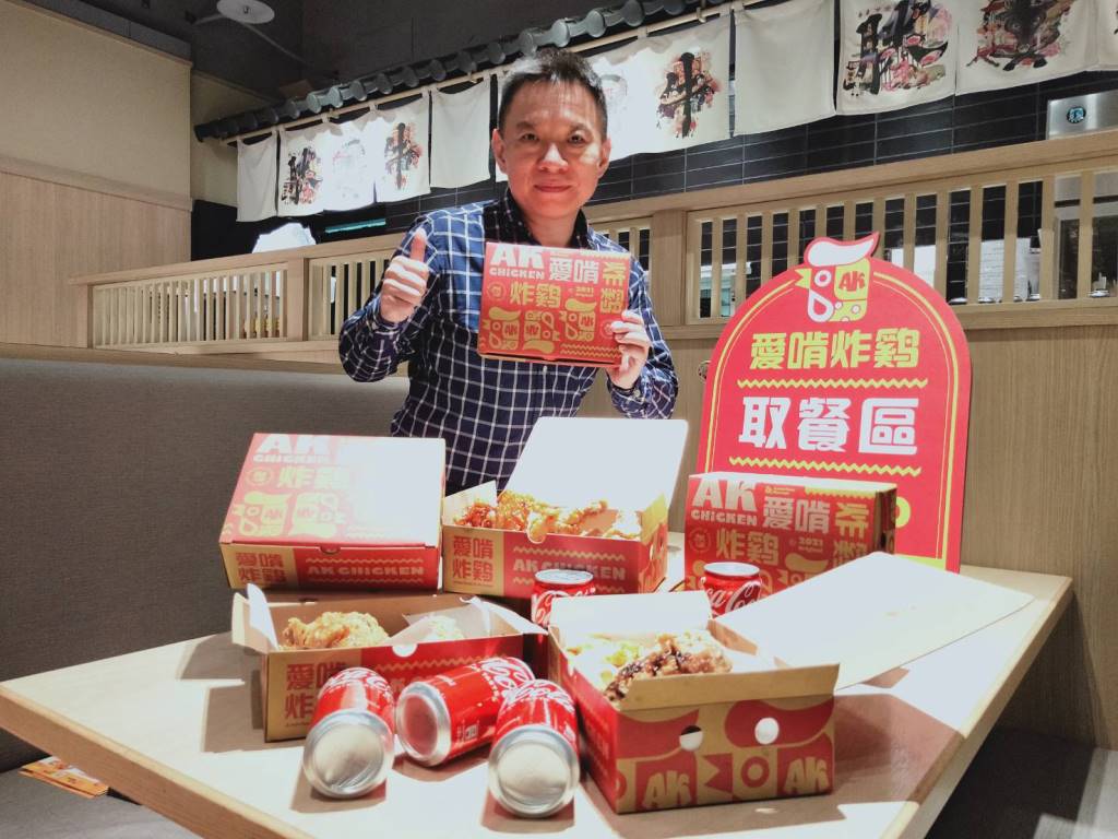 他說,全新的「AK CHICKEN愛啃炸雞」並沒有自己的實體店,除了在Ubereats及Foodpanda上販售,另外在京都勝牛、銀座杏子日式豬排、大阪王將及段純貞共11家門市可外帶,在十一月三十日前的開幕期間,至門市外帶自取,消費滿400元享8折優惠,或消費任一套餐加贈炸厚薯條一份。