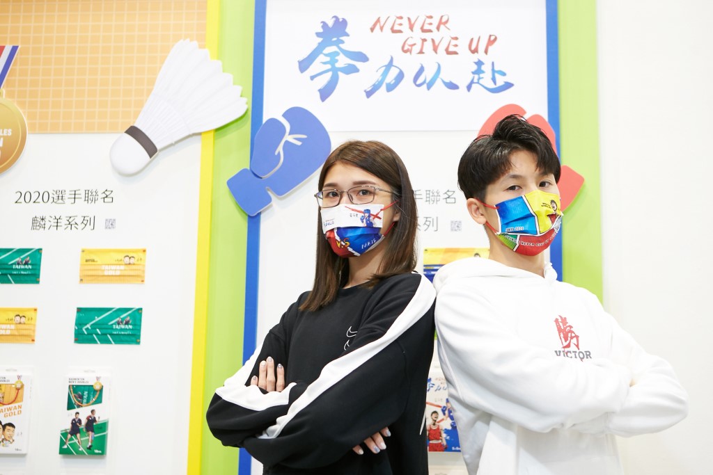 台灣女將黃筱雯、林郁婷戴上熱血英雄口罩出席「台灣康匠見面會」,除了感激《台灣康匠》持續對體壇的付出,也為全世界的「抗疫英雄」應援!