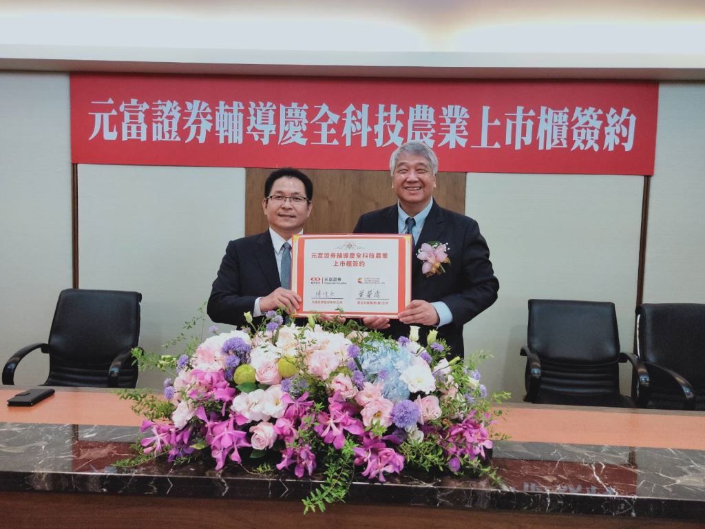 慶全科技農業董事長黃榮清(圖左)12月15日與元富證券董事長陳俊宏(圖右),共同簽訂上市(櫃)輔導合約,黃榮清表示,希望透過未來進入資本市場的幫助,能將擁有產銷履歷,在種苗培植、農田管理、原料採收與冰存冷藏等方面具有獨特技術的慶全地瓜推廣到國際,讓世界各國人民都能品嚐到台灣地瓜的美味,也期待能帶動吸引更多的人才投入甘藷產業,一起拓展台灣精緻農業的海外市場。